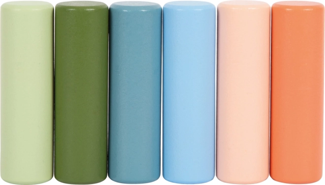 - Ławka z 6 kolorowymi walcami, drewniany młoteczek