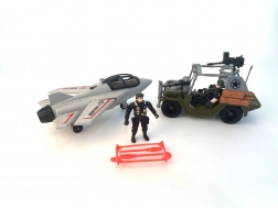 - Wojskowy pojazd, myśliwiec, 2 figurki żołnierzy, akcesoria