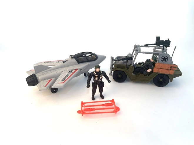 Przeżyj niesamowite wojskowe przygody z tym zestawem, który zawiera wojskowy pojazd i myśliwiec uzupełniony o dwóch żołnierzy oraz liczne akcesoria. Idealny dla wszystkich małych i dużych entuzjastów techniki wojskowej.