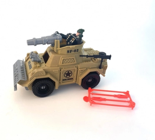 - Zawartość opakowania: wojskowy pojazd, figurka żołnierza, akcesoria.