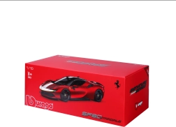 Model Ferrari SF90 Stradale Assetto Fiorano 2020 marki Bburago wiernie oddaje charakter pierwszej hybrydy plug‑in FERRARI. Specjalna edycja Assetto Fiorano koncentruje się na maksymalnych osiągach i właściwościach jezdnych – i te elementy znajdują odzwierciedlenie w precyzyjnym wykonaniu modelu. Czerwony lakier z kontrastowymi detalami podkreśla sportowy design i aerodynamiczne linie.