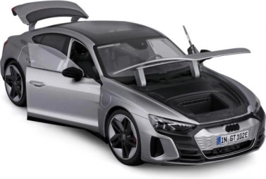 Dzięki solidnemu korpusowi die-cast wyróżnia się trwałością i odpornością kolorów. Dopracowane wnętrze, otwierane drzwi, maska i bagażnik (w zależności od wersji) podkreślają autentyczność prawdziwego AUDI RS e-tron GT.