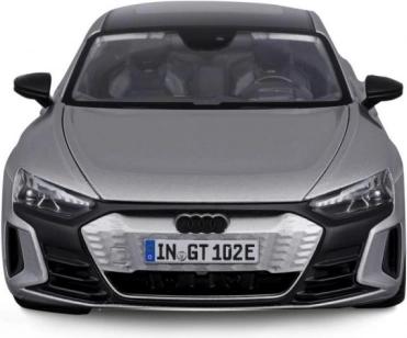 Wierne proporcje, precyzyjne reflektory, grill oraz autentyczne wnętrze podkreślają charakter AUDI RS e-tron GT w skali 1:18.