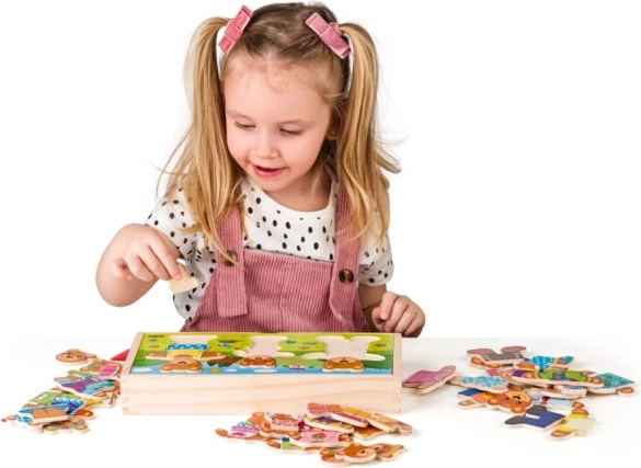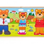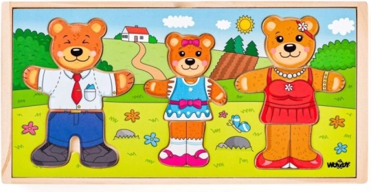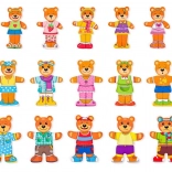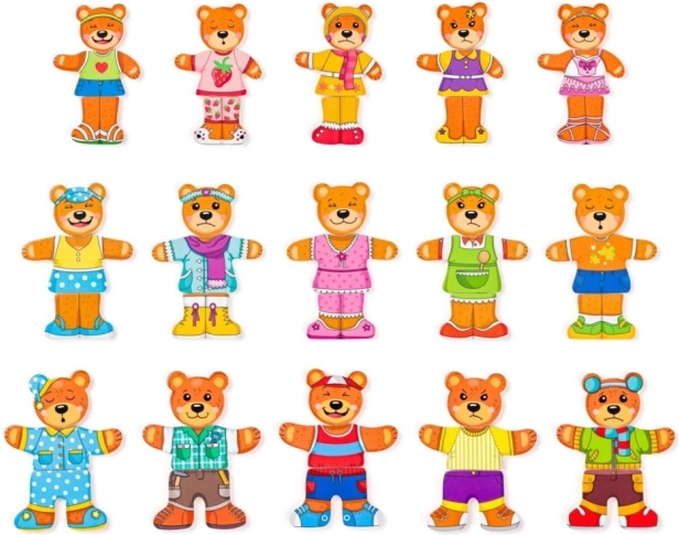 Rozwijaj u dzieci koordynację ręka–oko i rozpoznawanie kolorów z tą uroczą układanką. Dzieci mogą dobierać misiom buźki, koszulki i spodnie, tworząc nieskończenie wiele zabawnych kombinacji.