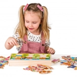 Wszystko jest przechowywane w praktycznym drewnianym pudełku, więc elementy się nie gubią, a zabawka jest zawsze gotowa w podróży i do odłożenia na półkę. Solidne drewno gwarantuje długą trwałość i przyjemne wrażenia z zabawy.