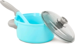 Lekki garnek z przezroczystą pokrywką uzupełniony poręczną szpatułką poszerza możliwości zabawy – od zup po makarony.