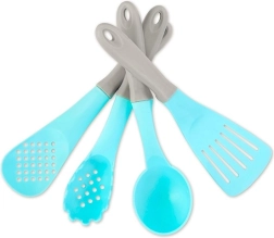 Zestaw łyżki, chochli, łopatki czy widelca do serwowania jest idealny do „nieprzywierającego gotowania” i bezpiecznej zabawy bez ostrych krawędzi.