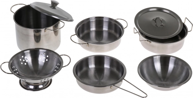 Duży dziecięcy zestaw kuchenny z garnkami ze stali nierdzewnej i innymi akcesoriami jest przeznaczony dla dzieci powyżej trzech lat, które lubią naśladować czynności kuchenne. Ten zestaw przynosi zabawę i pomaga rozwijać dziecięcą wyobraźnię.