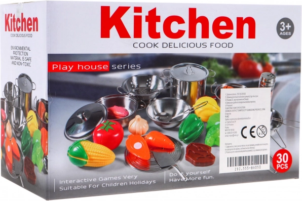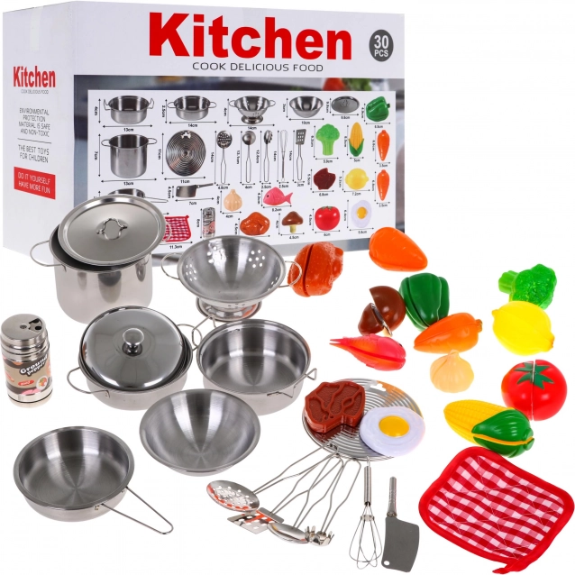 Dziecięcy zestaw kuchenny z garnkami ze stali nierdzewnej i akcesoriami 30 szt.