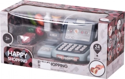 W zestawie znajduje się kolorowy koszyk na zakupy, a wszystkie produkty mają kod kreskowy, który można zeskanować. Kasa działa na baterie, co pozwala dzieciom bawić się wszędzie.