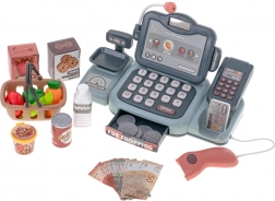 Oprócz kasy zestaw jest wyposażony w wagę, czytnik kart, skaner kodów kreskowych, mikrofon, kolorową kartę, gotówkę, koszyk i imitacje produktów spożywczych, takich jak napoje, warzywa i inne.