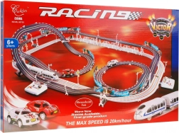Ten ogromny tor wyścigowy 2w1 przynosi emocje z wyścigów prosto do twojego domu. Przeznaczony dla dzieci powyżej 6 roku życia, oferuje ostre zakręty, serpentyny i proste odcinki toru, które zapewnią maksimum zabawy. Z prędkością aż do 20 km/h samochody i pociągi mogą bez kolizji ścigać się na swoich trasach.