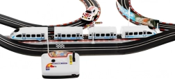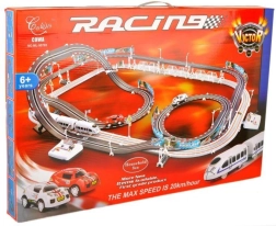 System torów oferuje nie tylko tor wyścigowy, ale także trasę dla elektrycznego pociągu, co daje nieskończone możliwości zabawy i wyścigów.