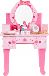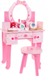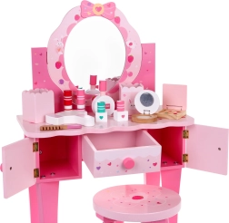 Ta wspaniała drewniana toaletka jest marzeniem każdej małej księżniczki. Z eleganckim designem i stabilną konstrukcją oferuje to modowe lustro przestrzeń na wszystkie ważne kosmetyczne dodatki. Zawiera taboret do komfortowego siedzenia i otwierane szuflady na przechowanie małych skarbów. Wyprodukowana z nietoksycznego drewna z farbami rozpuszczalnymi w wodzie.<2/p>