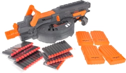 Doświadcz wspaniałej gry z Blaze Storm szarym karabinem, który zapewnia bezpieczną i interaktywną zabawę dzięki miękkim pociskom. Dzieci mogą jednym naciśnięciem przycisku napełniać magazynki i z radością obserwować swoje umiejętności strzeleckie.