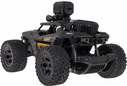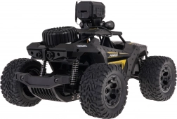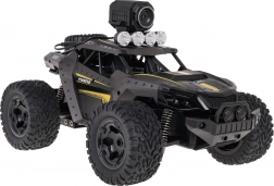 Zdalne sterowanie na częstotliwości 2,4 GHz gwarantuje płynne prowadzenie bez zakłóceń, w tym precyzyjną regulację kierunku (trym). Wbudowana kamera HD pozwala nagrywać dynamiczne ujęcia z jazdy; dzięki uchwytowi na telefon na kontrolerze wygodnie śledzisz obraz w aplikacji mobilnej (kod QR do pobrania w zestawie). Przednie światła LED poprawiają widoczność i dodają realistycznego wyglądu.