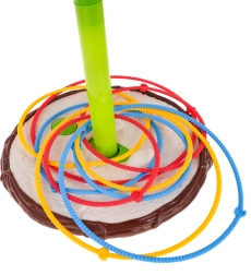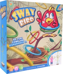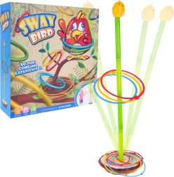 Zręcznościowa gra Bujny Ptaszek to zabawna zabawka odpowiednia dla dzieci od 3 lat. Gra rozwija refleks, koncentrację oraz koordynację ręka-oko poprzez rzucanie kolorowych kółek na palik.