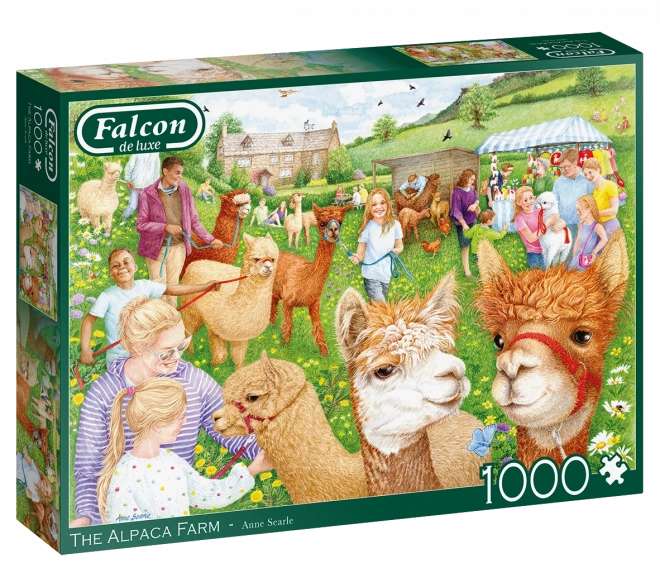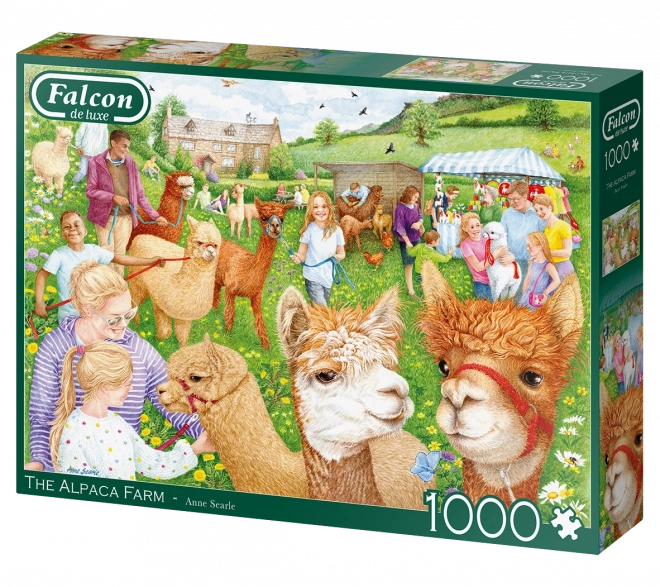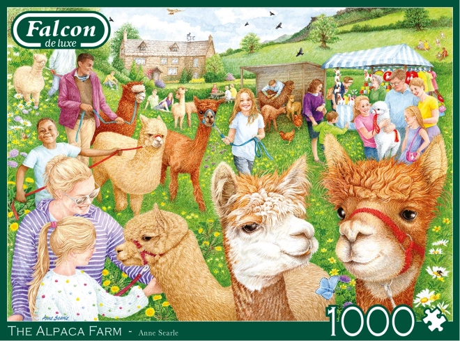 Zrelaksuj się z wysokiej jakości puzzlami FALCON z romantycznym motywem wiejskiej farmy i uroczymi alpakami. Puzzle o 1000 elementach oferują precyzyjny wykrojnik, intensywne kolory i po ułożeniu mają wymiary ok. 68 × 49 cm.