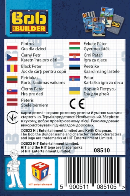 Tradycyjna gra Czarny Piotruś powraca w lubianym dziecięcym motywie BOB BUDOWNICZY. Gracze rozdają karty, tworzą pary i starają się pozbyć wszystkich kart. Przegrywa ten, komu w ręce zostanie Czarny Piotruś. Proste zasady gwarantują szybką i emocjonującą zabawę dla całej rodziny.