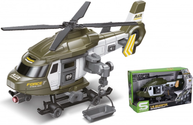 Wojskowy helikopter z efektami ożywi każdą zabawę z realistycznymi efektami świetlnymi i dźwiękowymi. Wielkość 29 cm.