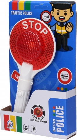 Wejdź do świata ruchu drogowego z tym policyjnym lizakiem o długości 23 cm. Realistyczne czerwone i zielone światło po przeciwnych stronach ułatwia zabawową naukę zasad ruchu i wspiera wyobraźnię w roli policjanta.