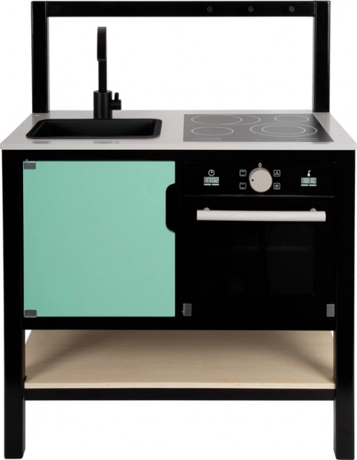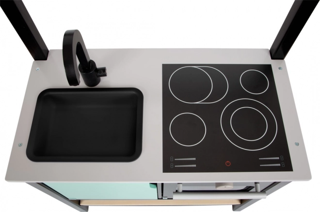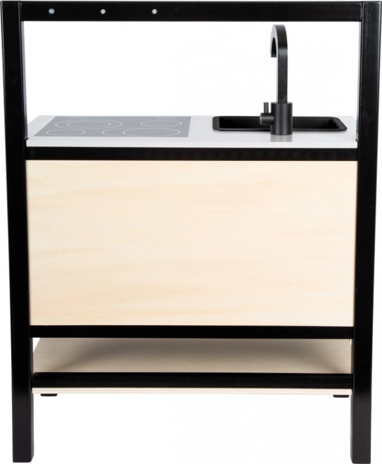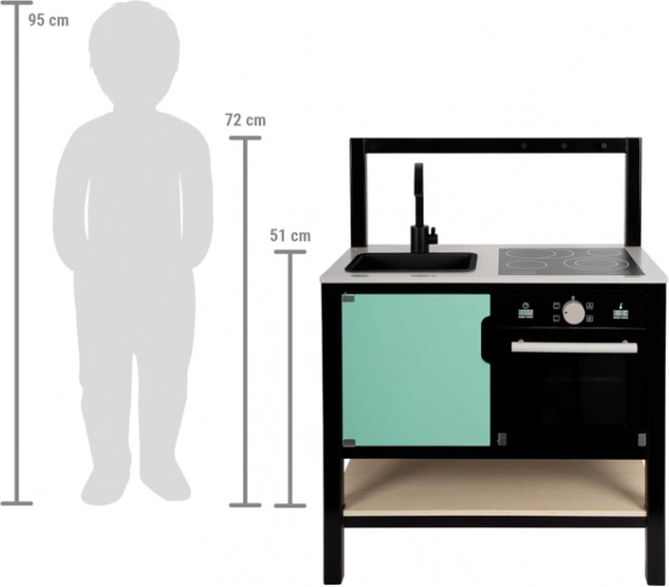 Ta wizualnie atrakcyjna kuchnia dla dzieci oferuje nowoczesny industrialny wygląd, który wyróżni się w każdym pokoju dziecięcym. Lekka, lecz stabilna konstrukcja z czarną ramą ułatwia przenoszenie, dzięki czemu można szybko zmieniać miejsce zabawy. Realistyczne pokrętła, ilustrowane urządzenia i funkcjonalne elementy pobudzają wyobraźnię i wspierają samodzielną zabawę.