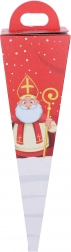 Tradycyjny czerwony stożek z motywem Mikołaja o długości 50 cm jest idealny do pakowania mikołajkowych upominków. Oferuje dużo miejsca na słodycze i drobne prezenty, a dzięki wyrazistemu kolorowi pięknie się prezentuje. Świetny wybór dla rodziców i szkół, które szukają praktycznego, wytrzymałego i estetycznego rozwiązania do pakowania.