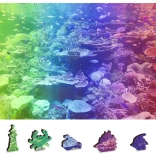 Wybrane elementy mają kształty morskich zwierząt i przedmiotów. Laserowe podkreślenie dodaje figurkom charakteru i zwiększa przyjemność z układania.