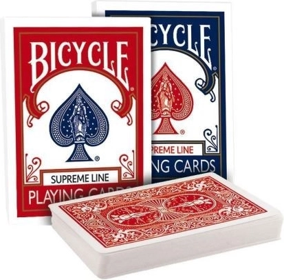 Karty BICYCLE Supreme Line zostały zaprojektowane z naciskiem na wydajność i kontrolę. Dzięki cieńszemu rdzeniowi i Crushed Stock wydają się lżejsze, szybciej dopasowują się do dłoni i zapewniają wyjątkowo przyjemny „snap” podczas manipulacji. Traditional Cut dodatkowo gwarantuje czyste przejścia przy faro shuffle i płynne tasowanie z obu stron.