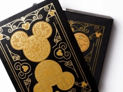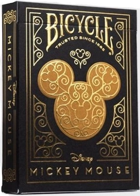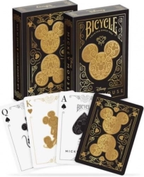 Karty do gry Bicycle Black & Gold Mickey łączą popkulturową ikonę z premium wykonaniem. Eleganckie czarno-złote wykończenie podkreśla wysoką jakość druku i dekoracyjne elementy, a przemyślane motywy skrywają małe sylwetki Miki, dając satysfakcję z odkrywania detali.
