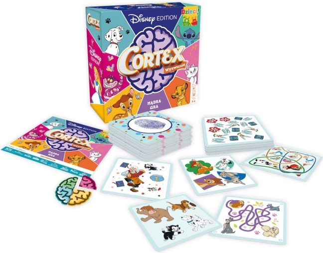 Gra karciana Cortex Disney oferuje zabawę i naukę w jednym opakowaniu. Dzieci spotkają się z ośmioma różnymi typami zadań, które przyczynią się do rozwoju logicznego myślenia, pamięci, szybkości i wyobraźni przestrzennej. Gra zawiera zadania takie jak labirynty, obrazy lustrzane i rozpoznawanie kształtów za pomocą dotyku.