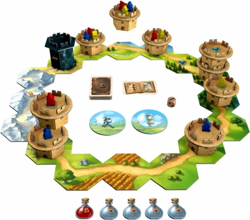 Rywalizuj w emocjonującej grze planszowej Wędrujące Wieże, w której gracze prowadzą swoich czarodziejów do legendarnego Kruczego Zamku. Gra jest pełna niespodzianek, pułapek i wymaga sztuki warzenia eliksirów oraz poruszania się po wieżach, co daje strategiczne korzyści. Zwycięża ten, kto jako pierwszy wprowadzi wszystkich swoich czarodziejów do zamku.