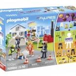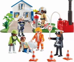 Playmobil Moje Figury to idealne uzupełnienie każdego modelu posterunku policji, strażnicy pożarnej lub innego miejskiego scenariusza. Z pomocą tych figurek można rozegrać różne historie – od wymyślonych pożarów po napady na bank. Ten zestaw wprowadza na scenę policjantów, strażaka i ratowników, którzy w każdej niebezpiecznej sytuacji ratują miasto.