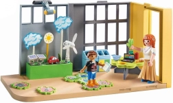 W zestawie znajdują się kosze do segregacji odpadów, rośliny, ekologiczne dekoracje, elementy „zielonej” infrastruktury oraz wyposażenie szkolne. Zestaw jest kompatybilny z innymi zestawami PLAYMOBIL (np. rozszerzenia klas), więc łatwo połączysz go w większy szkolny świat.
