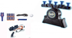 Ten zestaw do zabawy w strzelanie obejmuje ruchomy cel, dwa plastikowe pistolety, strzałki i piłeczkę. Cel ma wysokość 30 cm i jest łatwo regulowany dla różnych poziomów gry. Można go ładować za pomocą kabla USB lub na baterie, co zapewnia elastyczność użytkowania.