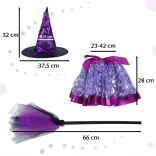 Ubranie Twojego dziecka w ten urokliwy zestaw stroju wiedźmy, zawierający ozdobny kapelusz, fioletową spódnicę z elastycznym pasem oraz wyjątkową miotłę, to świetny pomysł na szkolne bale, wydarzenia tematyczne lub po prostu codzienną zabawę w domu.