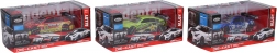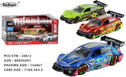 Metalowy samochód wyścigowy o wymiarach 11x4,5x3,2 cm oferuje zabawę z mechanizmem naciągu w trzech wariantach kolorystycznych - zielony, czerwony i niebieski.