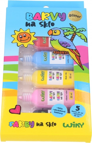 Farby do szkła z brokatem 5+1. Zawiera 5 kolorów i czarną konturę do kreatywnego malowania.