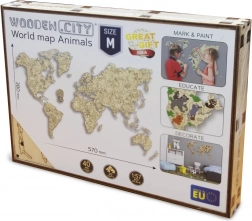 Stylowa drewniana mapa świata ze zwierzątkami od WOODEN CITY to piękna dekoracja do pokoju dziecięcego, która wspiera kreatywność oraz zainteresowanie przyrodą i geografią. Dzięki łatwemu montażowi za pomocą dwustronnej taśmy klejącej szybko umieścisz ją na ścianie, drzwiach lub szafie. Wykonana z wysokiej jakości sklejki brzozowej, aż zachęca do pokolorowania.