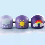 - Nadruki z liczbami 1–3, motywy pogody (słońce, deszcz, tęcza)