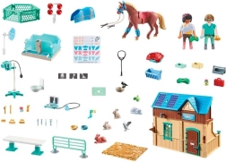 Witaj na malowniczym ranczu Waterfall, gdzie paczka przyjaciół opiekuje się swoimi końmi i pomaga ludziom oraz zwierzętom. Ten dopracowany zestaw PLAYMOBIL oddaje realistyczne środowisko hipoterapii i kliniki weterynaryjnej z aquatrainerem, który można napełnić wodą do delikatnej rehabilitacji kontuzjowanych koni. Początkująca lekarka weterynarii Harleen troszczy się o kocięta i świnki morskie, a terapeuta koni Phil przeprowadza badania i zabiegi.