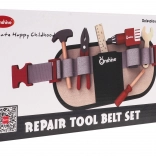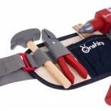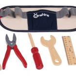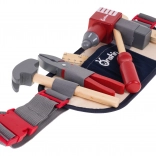 Pasek na narzędzia jest regulowany i zapinany na klamrę, zawiera kieszeń środkową i pięć przegródek na przechowywanie wszystkich narzędzi z zestawu. Dzieci z radością mogą bawić się w naprawacza i rozwijać swoją wyobraźnię.