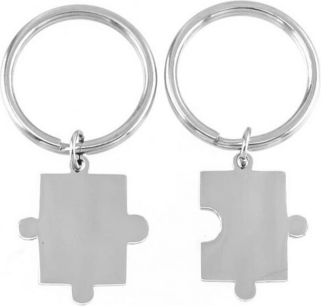 Podaruj oryginalny symbol połączenia – dwa breloki w kształcie puzzli, które idealnie do siebie pasują. Dzięki stali chirurgicznej z lśniącym wykończeniem breloki są łatwe w pielęgnacji, nie rdzewieją i na długo zachowują swój wygląd.