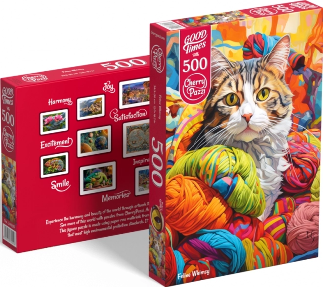 Spędź godziny zabawy z puzzlami Kocie Figle od renomowanej marki Cherry Pazzi. Z 500 elementami stanowi wyzwanie, które będzie bawić całą rodzinę. Oprócz samego układania możesz cieszyć się pięknym obrazem kocich przyjaciół w unikalnych pozach, co czyni go świetnym elementem dekoracyjnym do każdego wnętrza.