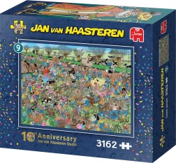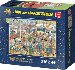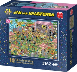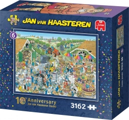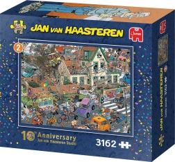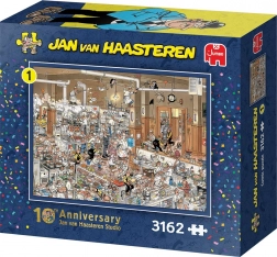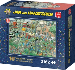 Świętuj 10 lat studia JAN VAN HAASTEREN z unikalnymi, kolekcjonerskimi puzzlami w luksusowym pudełku o łącznej liczbie 30 200 elementów i imponującej długości 6 metrów. Dziesięć osobnych układanek po 3162 elementy tworzy razem wielkoformatową scenę pełną zabawnych detali i ikonicznych motywów uwielbianych przez fanów na całym świecie. Częścią jubileuszowej edycji limitowanej jest dodatkowo 10 plakatów A3 z poszczególnymi motywami.