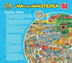 Wejdź do świata pełnego absurdalnego humoru i barwnych scen z kultową serią JAN VAN HAASTEREN. Każde z dziesięciu puzzli jest pakowane oddzielnie, a po ułożeniu idealnie łączy się w jeden okazały obraz z tysiącami drobnych gagów. Szukaj typowych elementów, takich jak płetwa rekina, błąkające się ręce, proteza zębowa, Mikołaj oraz autoportret autora.