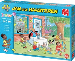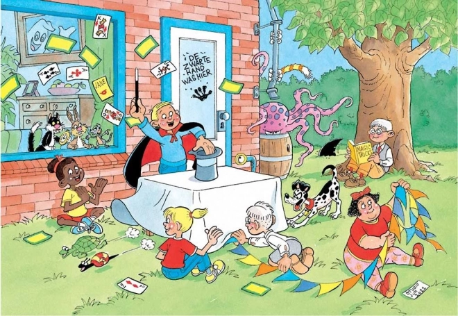 Wejdź do świata żartów i kolorów z puzzlami JUMBO z kolekcji Jan van Haasteren Junior. Każdy element prowadzi do kolejnych uśmiechów i odkryć, od ikonicznej płetwy rekina po niepozorne postacie i zaskakujące sytuacje. Motyw Magik oferuje dynamiczną i zabawną scenę, która ucieszy zarówno dzieci, jak i dorosłych.