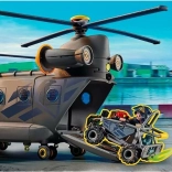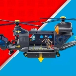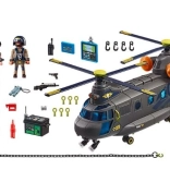 Z helikopterem Playmobil i jego wyciągarką nawet misje ratunkowe w powietrzu są proste dla jednostki specjalnej. Kokpit mieści dwie figurki, a przestrzeń ładunkowa ma kolejne dwa siedzenia dla dodatkowych figurek. Zintegrowany moduł świetlny i dźwiękowy aktywuje się podczas ruchu rotora. Delikatny ładunek można zabezpieczyć paskiem, a dodatkowy przymocować za pomocą łańcuchów transportowych. Śmigłowiec ratunkowy można otworzyć z czterech stron, co ułatwia zabawę.