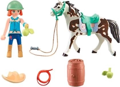 - Uroczo zaprojektowany zestaw zawiera figurkę PLAYMOBIL Ellie, konia Sawdust, siodło, ogłowie, lasso i wiele innych akcesoriów do westernowego jeździectwa i pielęgnacji koni.