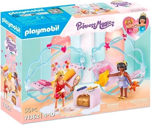 Przeżyj przygody z tęczowymi księżniczkami na niebiańskim piżamowym przyjęciu PLAYMOBIL. Zanim dwie tęczowe księżniczki położą się do magicznych, kołyszących się łóżek, ozdabiają się lśniącą biżuterią, a następnie wyruszają do świata snów i wyobraźni z baśniowymi postaciami oraz magicznymi sceneriami.